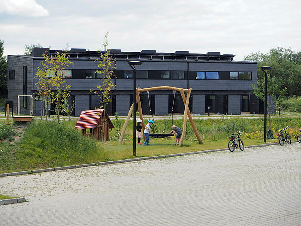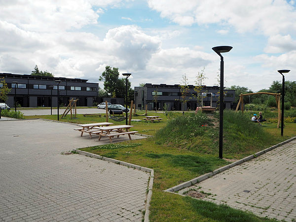 Jyllands første AlmenBolig+ afdeling ligger på Nymarks Allé i udkanten af den idylliske Aarhusforstad, Mårslet. Byen byder på flere indkøbsmuligheder, skole og daginstitutioner, og den er derfor et oplagt valg for børnefamilien. Med grønne marker og naturstier som nærmeste naboer er der ikke langt til gode oplevelser i det fri. Der er busstoppested lige ved siden af afdelingen og Letbanen kører ofte fra centrum af Mårslet.